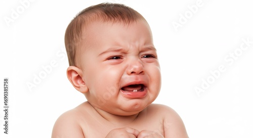 泣き叫ぶ赤ん坊 白い背景 柔らかな光. AI Generated