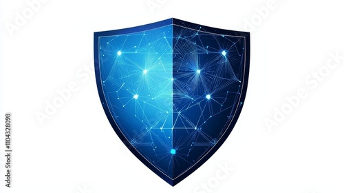 a blue shield with connected lines and dots on a white background, symbolizing the importance of protecting one's business from cyber attacks