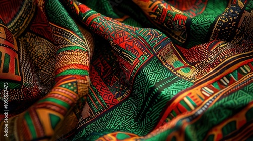 A close-up of a colorful cloth featuring a black-and-red pattern at its base