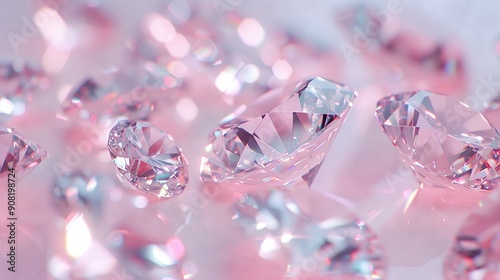 A cluster of pink diamonds resting atop a white countertop alongside a heap of additional pink diamonds