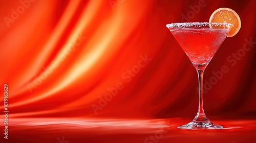 A glass containing a drink with an orange slice and a drizzle of sugar on the rim is optimized to 26 tokens