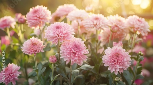 A multitude of pink blooms gleam vividly against the backdrop of sunlit foliage, with flowers in foreground displaying this radiant scene