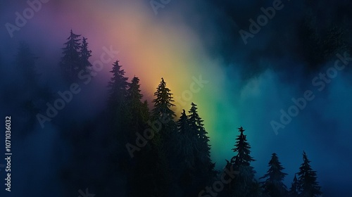 A rainbow painting of a forest, with one in the sky and another in the trees
