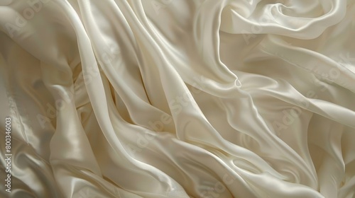 A tight shot of a white fabric with a lengthy, flowing fabric draped over it
