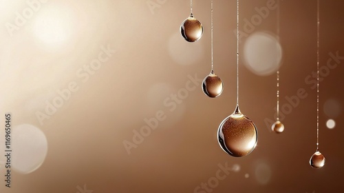 Close-up of ornaments on light brown background with Bokeh lights in background
