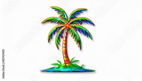 夏の心地、トロピカル、ヤシの木、ロゴ風、豊かな色彩、シンプル、視覚的に見やすいイラスト、白い背景 generated by AI