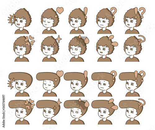 茶色の人物横顔イラスト 表情バリエーション 33