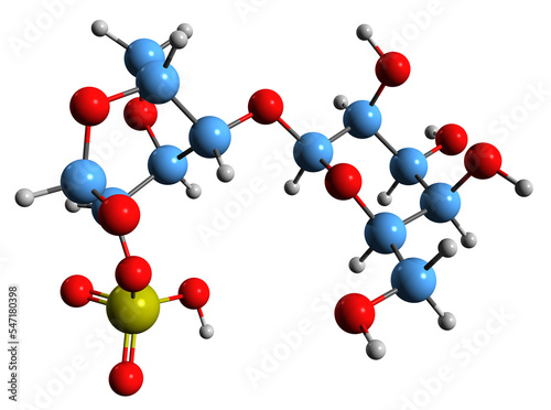3D image of Carrageenan skeletal formula - molecular chemical structure of sulfated polysaccharide isolated on white background