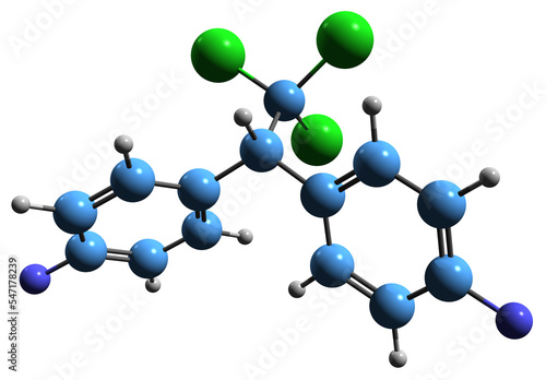 3D image of Difluorodiphenyltrichloroethane skeletal formula - molecular chemical structure of insecticide DFDT isolated on white background