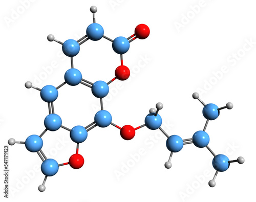 3D image of Imperatorin skeletal formula - molecular chemical structure of furocoumarin isolated on white background