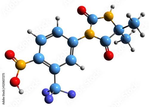 3D image of Nilutamide skeletal formula - molecular chemical structure of nonsteroidal antiandrogen isolated on white background