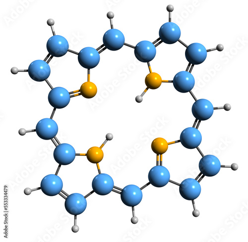 3D image of Porphyrin skeletal formula - molecular chemical structure of heterocyclic macrocycle organic compound isolated on white background