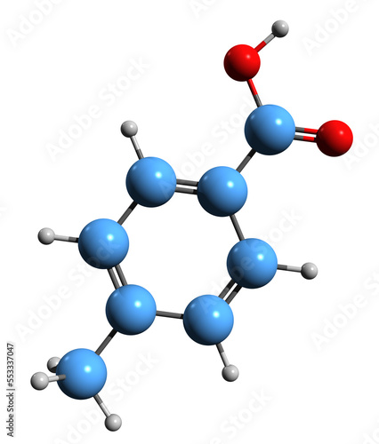 3D image of Toluic acid skeletal formula - molecular chemical structure of 4-Methylbenzoic acid isolated on white background