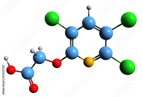 3D image of Triclopyr skeletal formula - molecular chemical structure of Fungicide isolated on white background