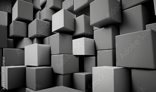 a black and white photo of a bunch of cubes on a wall with a black background that looks like a wall of cubes. generative ai