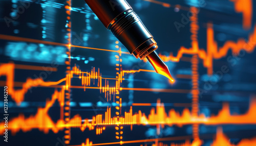 a black marker that highlights a graph of financial data on a computer screen. The graph is filled with many lines showing financial information such as stock quotes or stock market data.