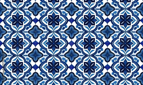 a blue and white pattern with a flower on the side. generative ai