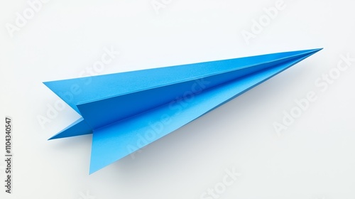 a blue paper airplane on a white background The paper airplane is a bright, vibrant blue color, standing out against the stark white backdrop