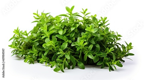 a bush of green leaves on a white background with a clipping path to the top of the bush to the bottom of the bush.
