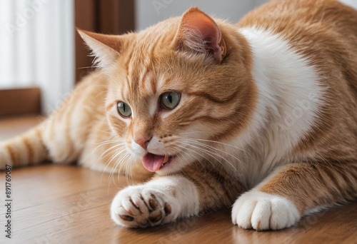 A cat meticulously licking its paw to clean itself.