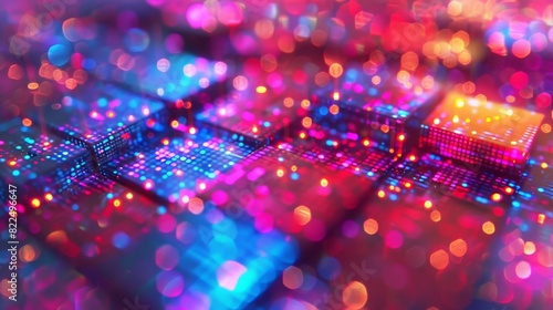 A clear close-up of a computer keyboard with individually distinguished keys in red, blue, yellow, pink, and purple hues
