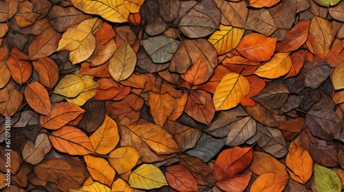 a close up of a bunch of leaves on the ground with a green apple in the middle of the picture. generative ai