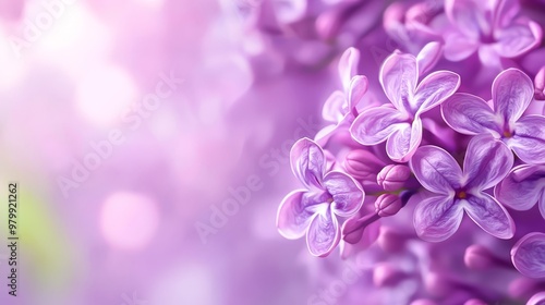 A close-up of several lilac blooms against a softly blurred background, illuminated by a shallow depth of field