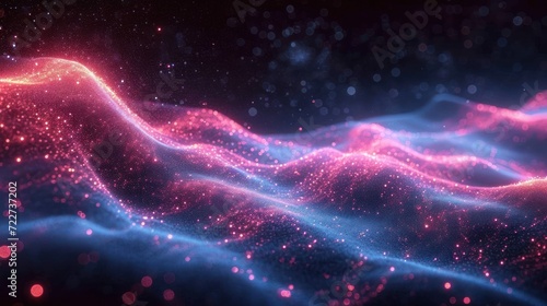 a computer generated image of a wave of pink and blue lights on a black background with a blurry wave of pink and blue lights.