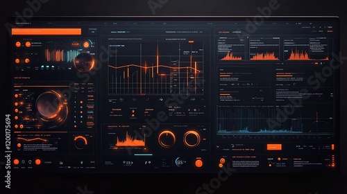 A dark, music production software UI design with numerous buttons and graphs