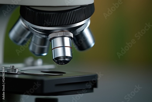 A detailed close-up of a high-powered microscope lens, highlighting the precision and intricacy of its design.