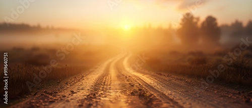 A dirt path in a open field, bordered by trees where sunlight filters through