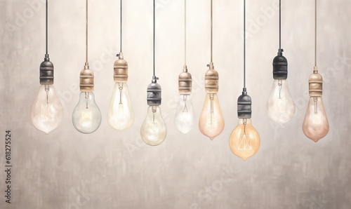 a group of light bulbs hanging from a ceiling fixture in a room with a concrete wall behind them and a concrete wall in the background. generative ai