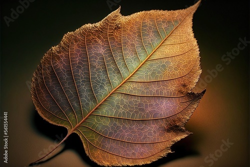 a leaf with a brown and green leaf on it's side, with a black background and a yellow and green leaf on the other side of the leaf, with a brown spot.