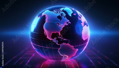 A mesmerizing holographic globe with softly glowing digital continents, hovering in an empty