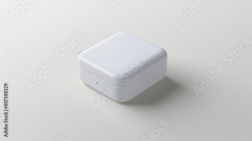 A sophisticated wireless earbud case opened on a pristine white surface, with the logo subtly embossed on the lid