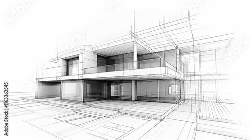 A striking architectural drawing featuring a building with expansive voids and numerous windows, Precision and creativity in drawing professional construction blueprints and floor plans expert crafts