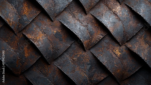 A tight shot of a metal texture, appearing as if it's composed of varying-sized metal rods in distinct hues