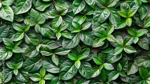 A tight shot of a textured green wall, adorned with an abundance of leaves at its top and bottom