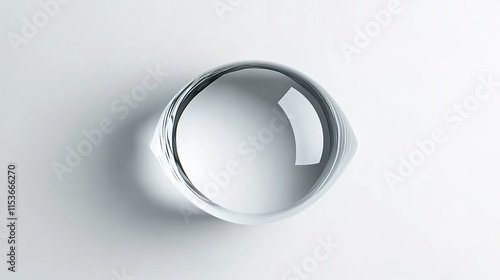 A top-down view of an eye-shaped lens on a white background, in a minimalist style, with soft lighting.