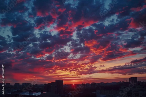 A valley, obscured by low-lying clouds, is bathed in sunlight as it fades over mountain silhouettes at dusk. Beautiful simple AI generated image in 4K, unique.