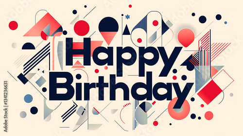 A vibrant digital artwork featuring "Happy Birthday" in playful bold typography with a colorful abstract geometric background composed of circles and dynamic patterns.