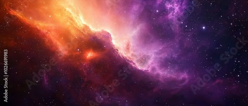 A vibrant expanse teeming with myriad stars, anchored by a purple-orange nebula At its heart, a star cluster glows brightly