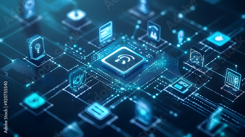 - A visual of IoT devices being protected by cybersecurity measures, ensuring safe and secure communication between connected devices