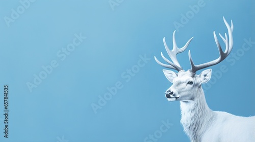 a white deer with large antlers on a blue background. generative ai