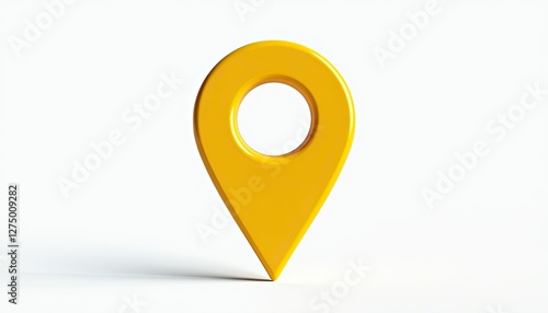 able Glossy Yellow 3D Map Pin Design for White Background. A yellow map pointer on a white background.