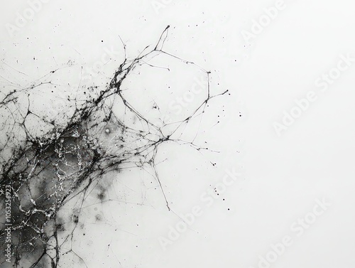 Abstract black ink pattern with branching, web-like structures, ideal for creative designs, scientific visuals, or abstract art concepts.