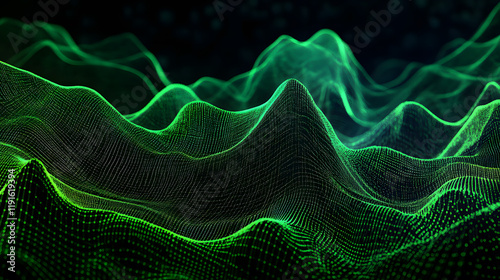 Abstract Green Digital Wave with Futuristic Grid Lines on Dark Background