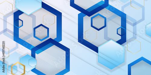 Abstract hexagon background vector illustration. Gradient blue with transparent geometric shapes.