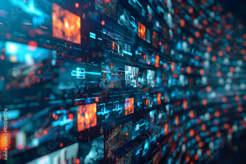 Abstract multimedia background featuring various channel images for web streaming and tv technology