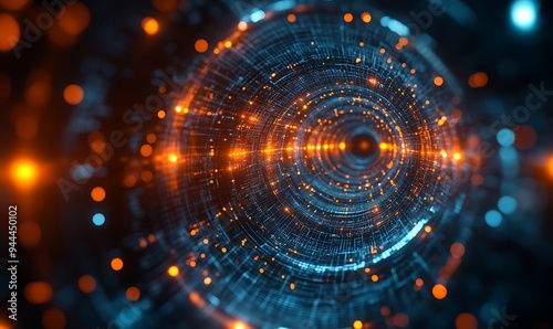 Abstract technology background with geometric circles and dots, simple vector illustration of abstract shapes in orange on a dark blue background design